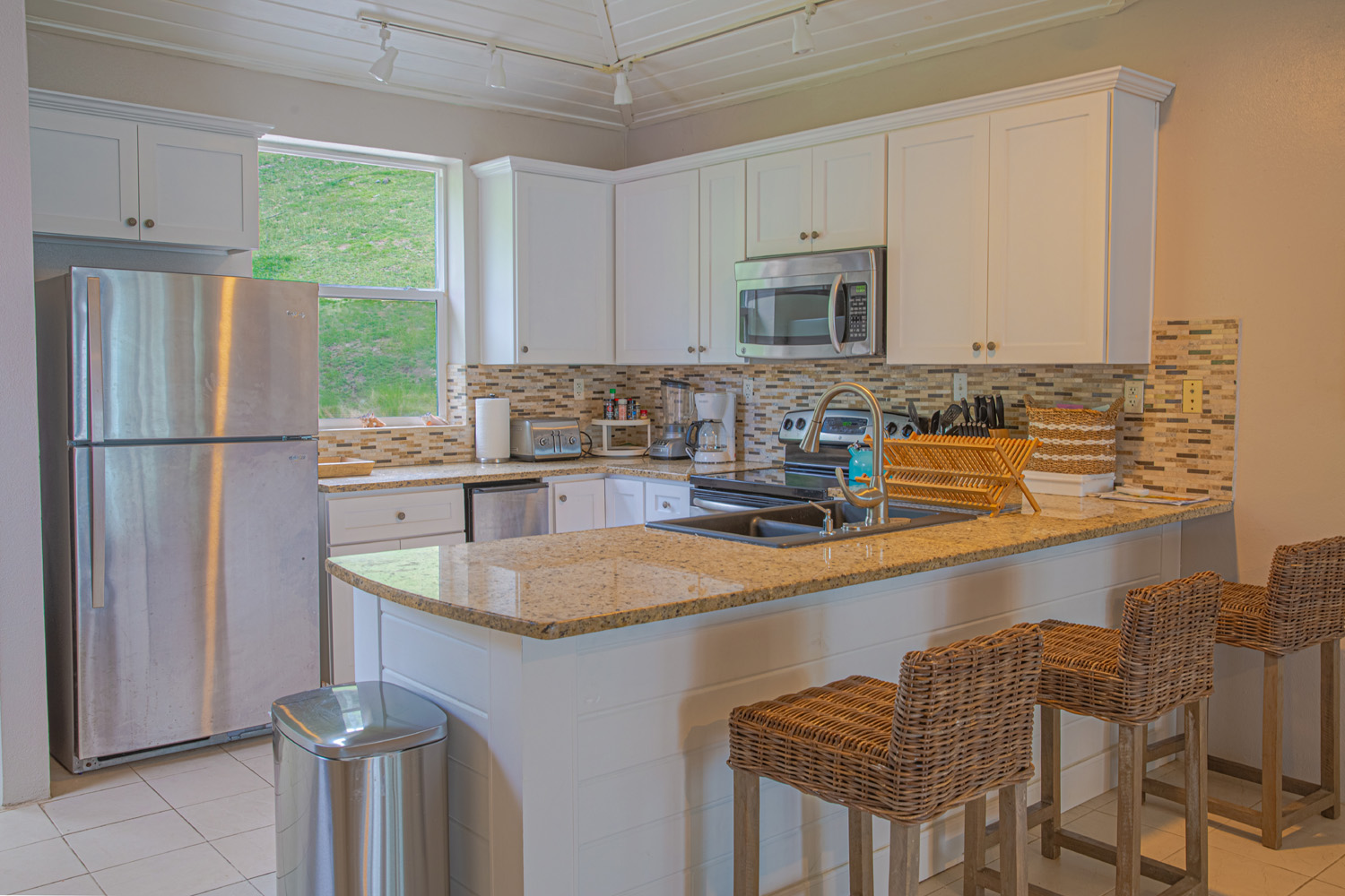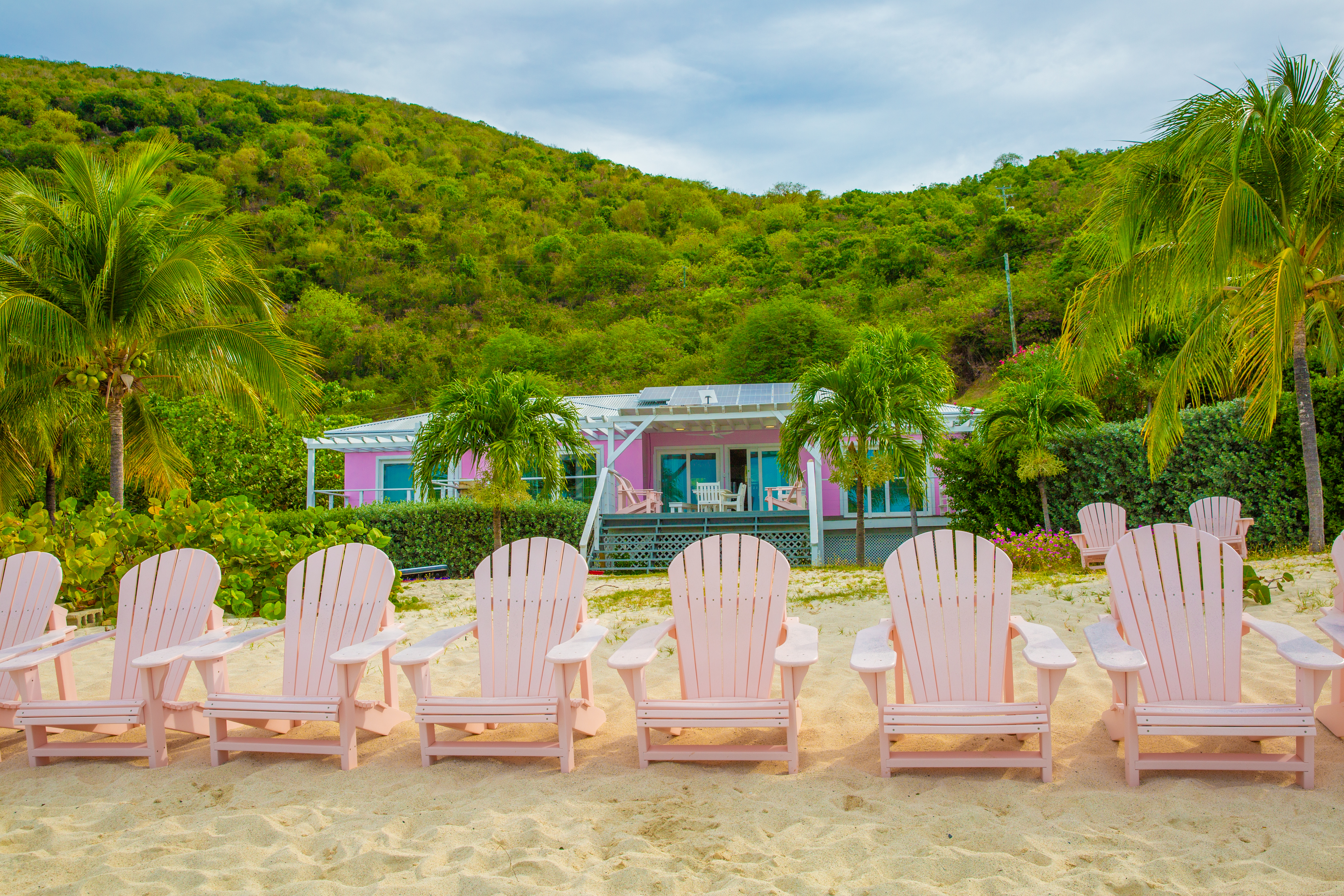 Enjoy magnificent views of White Bay from this 3 bedroom, 3 bath beachfront villa. Enjoy the sun on the expansive deck or relax in the pink Adirondack chairs right in the sand in front of the house.